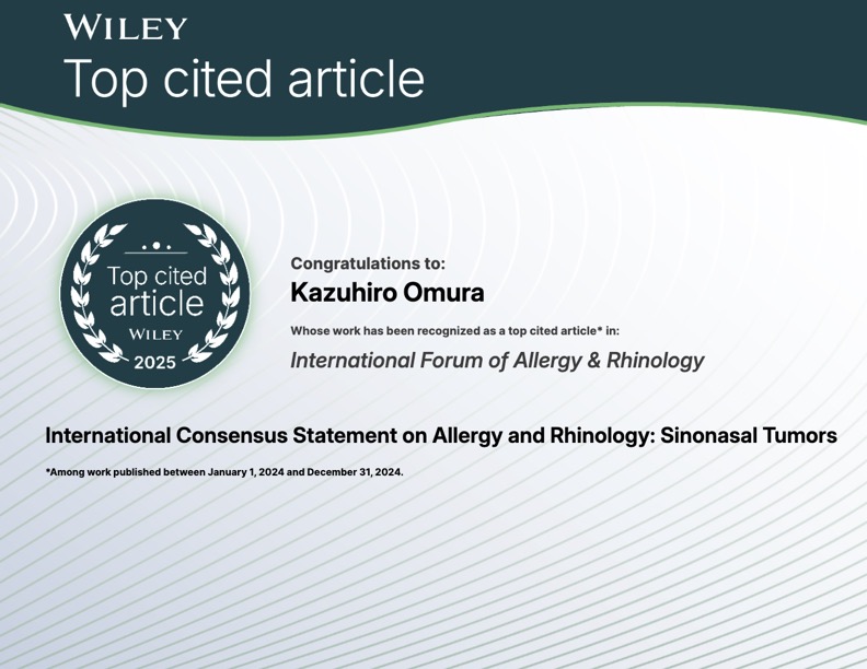 先日、鼻科の世界の中で、とても由緒ある論文の一つであるIFARから、一通のメールが届きました。その内容は2025年で一番引用された論文が私も関わらせてもらった鼻 …